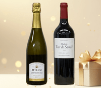 シャンパーニュと同じ製法で作られた、高級感のあるスパークリングワインとバランスの良い味わいのボルドー産赤ワインのギフトセット。